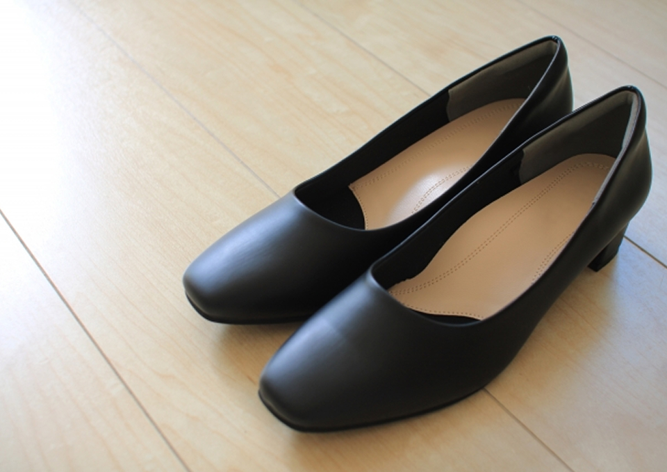 色は黒が基本です。強い光沢や大きな装飾は避けます。男性は紐靴、女性はつま先が見えない形が無難です。音が響きにくい底材と、安定するかかとの高さを選び、脱ぎ履きのしやすさも意識します。
